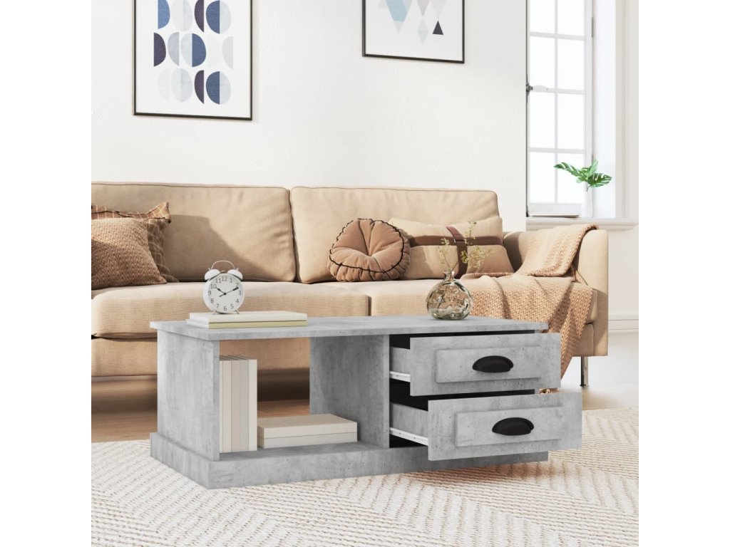 vidaXL Konferenčný stolík betónový sivý 90x50x35 cm kompozitné drevo