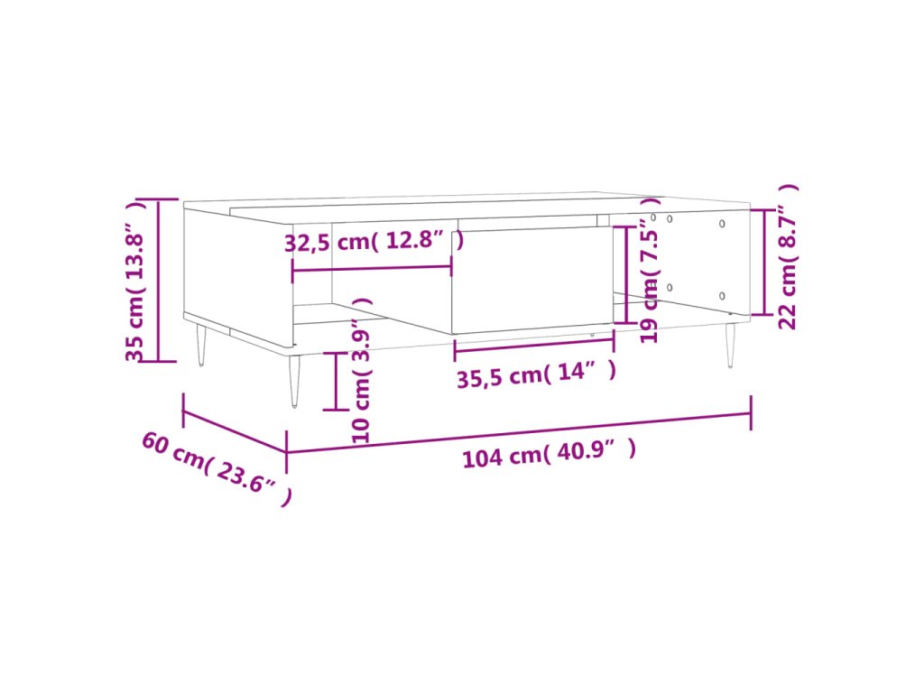 vidaXL Konferenčný stolík biely 104x60x35 cm kompozitné drevo