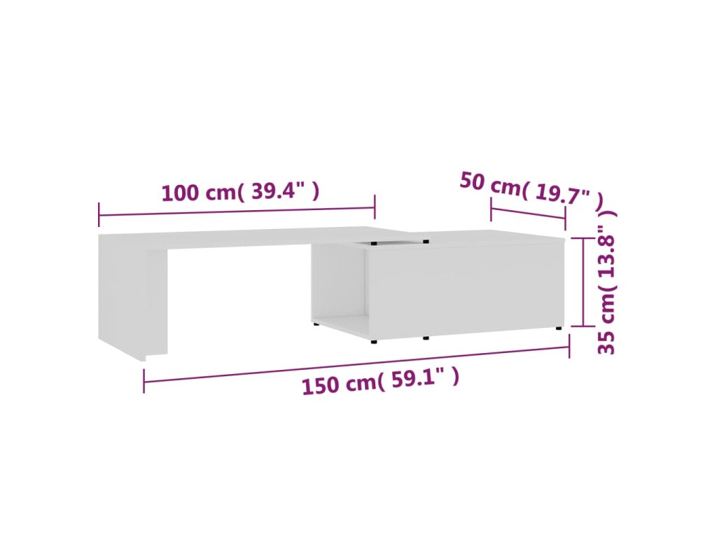 vidaXL Konferenčný stolík biely 150x50x35 cm drevotrieska