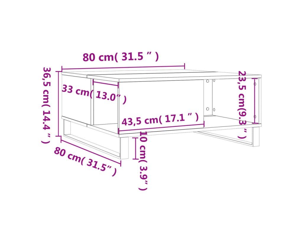 vidaXL Konferenčný stolík biely 80x80x36,5 cm spracované drevo