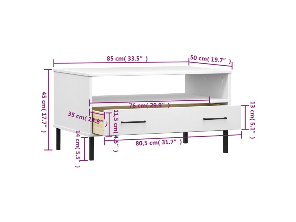 vidaXL Konferenčný stolík biely 85x50x45 cm masívne drevo OSLO