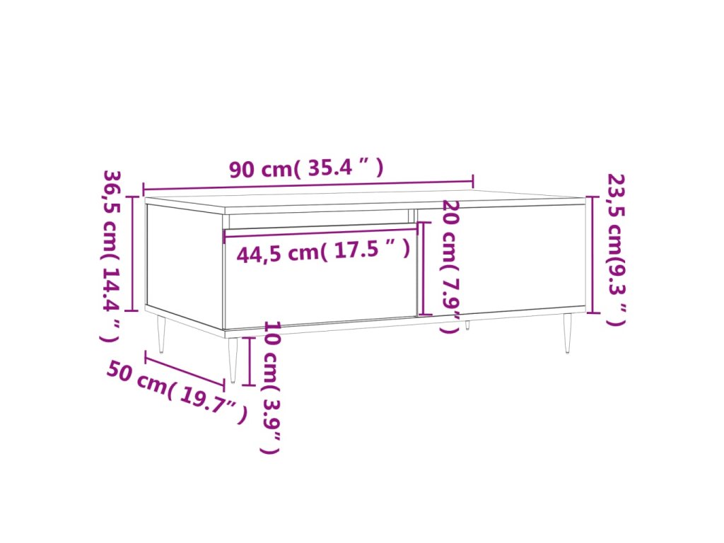 vidaXL Konferenčný stolík biely 90x50x36,5 cm spracované drevo