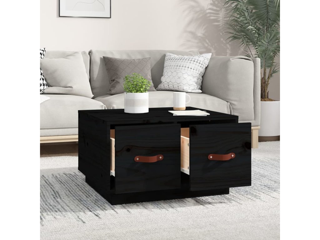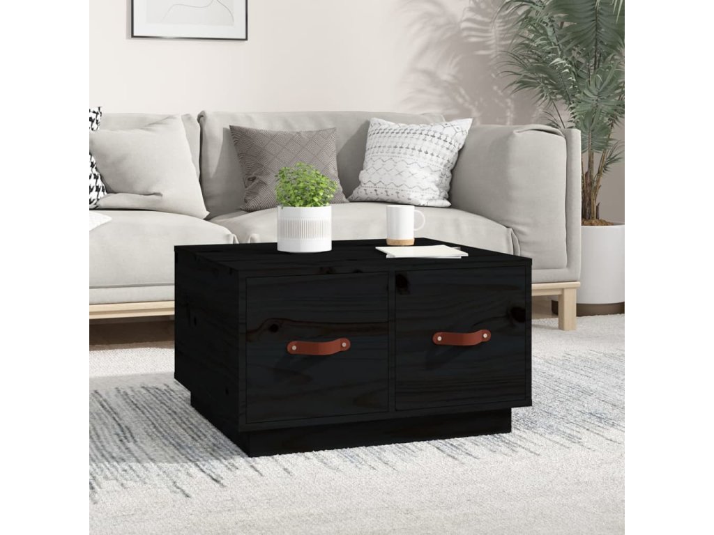 vidaXL Konferenčný stolík čierny 60x53x35 cm borovicový masív