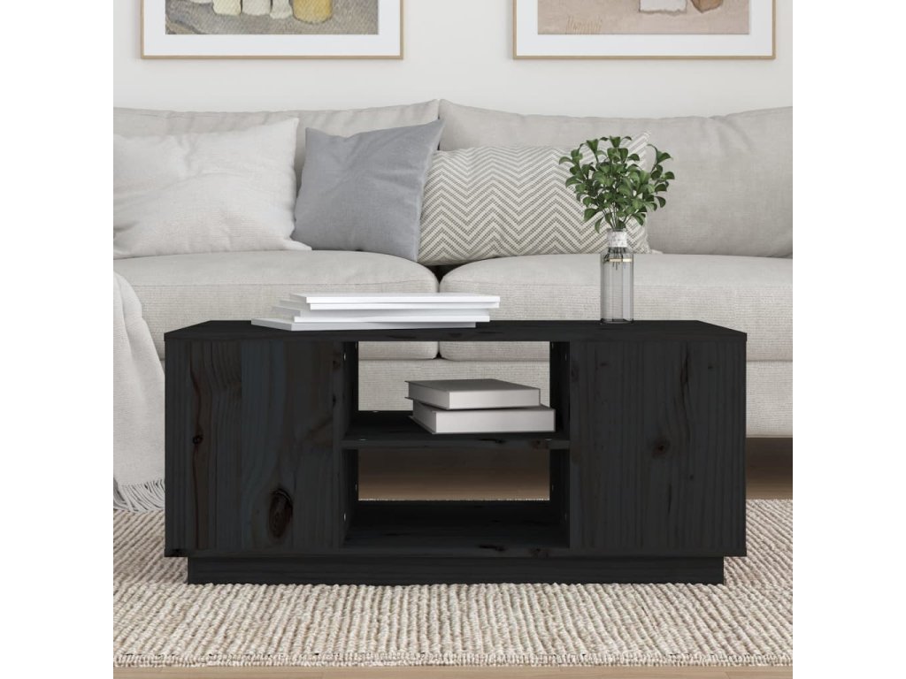 vidaXL Konferenčný stolík čierny 90x49x40,5 cm borovicový masív