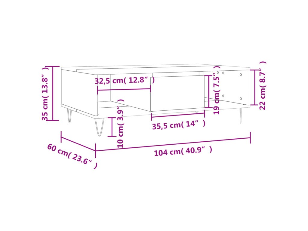 vidaXL Konferenčný stolík dub sonoma 104x60x35 cm kompozitné drevo
