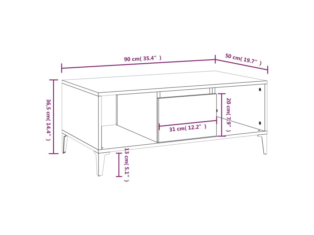 vidaXL Konferenčný stolík dub sonoma 90x50x36,5 cm spracované drevo