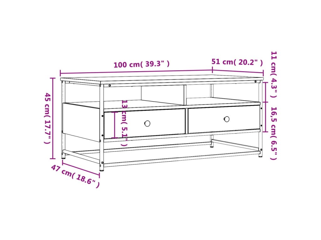 vidaXL Konferenčný stolík dymový dub 100x51x45 cm kompozitné drevo
