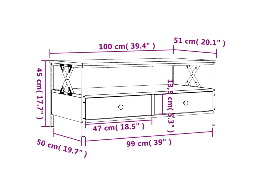 vidaXL Konferenčný stolík dymový dub 100x51x45 cm kompozitné drevo