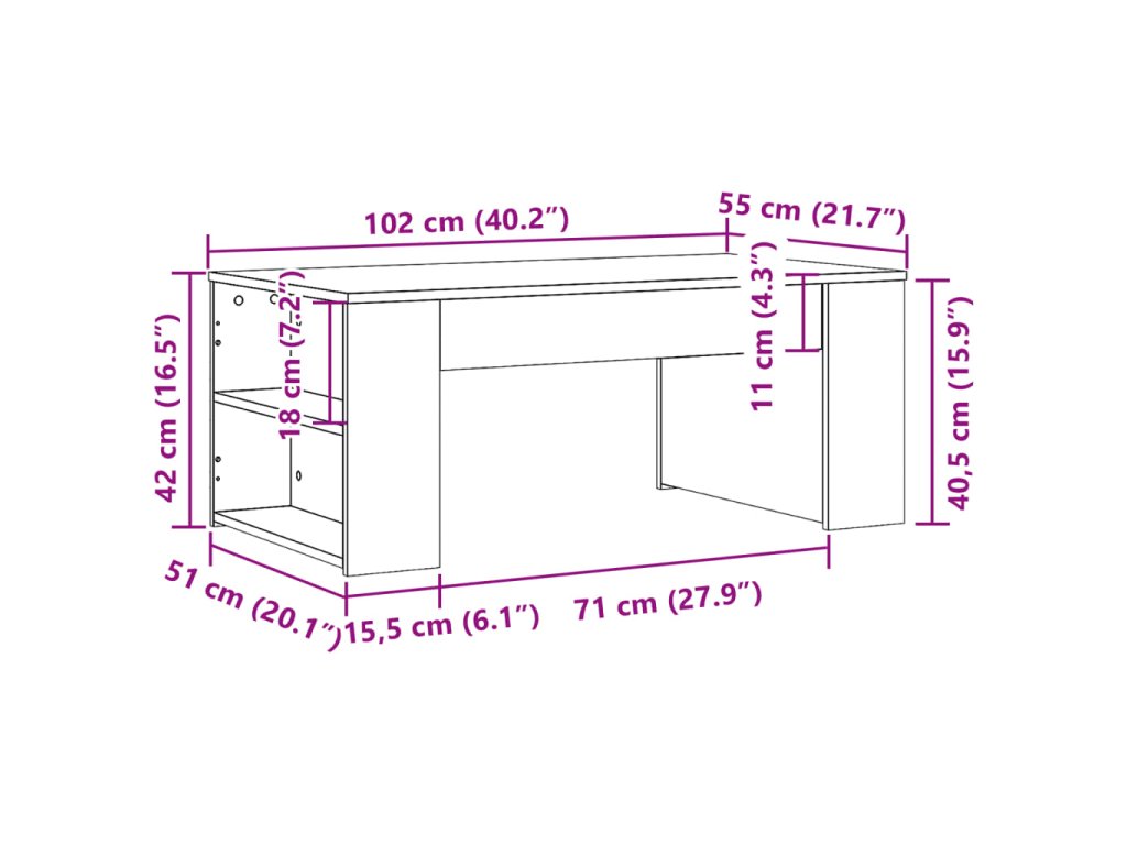 vidaXL Konferenčný stolík dymový dub 102x55x42 cm kompozitné drevo