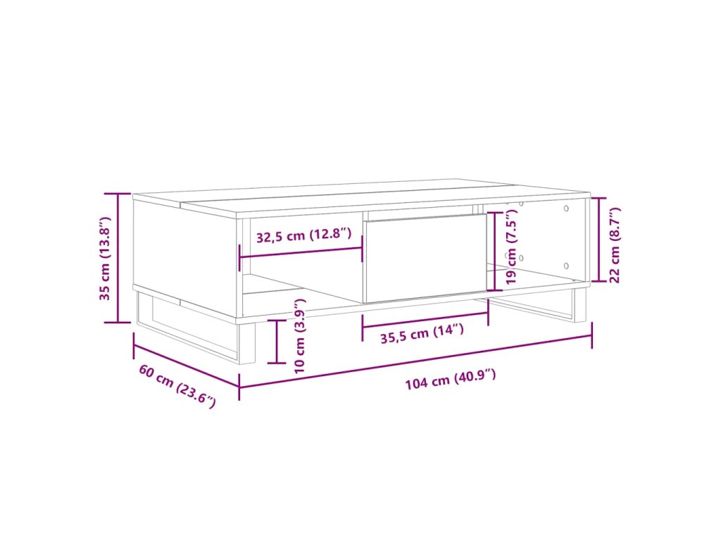 vidaXL Konferenčný stolík dymový dub 104x60x35 cm kompozitné drevo