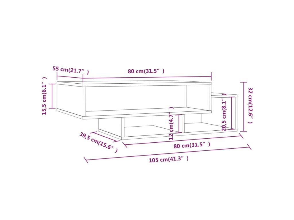 vidaXL Konferenčný stolík dymový dub 105x55x32 cm spracované drevo