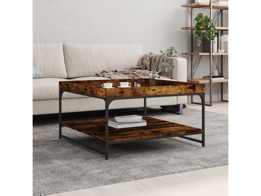 vidaXL Konferenčný stolík dymový dub 80x80x45cm kompoz. drevo a železo