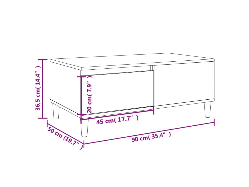 vidaXL Konferenčný stolík dymový dub 90x50x36,5 cm spracované drevo