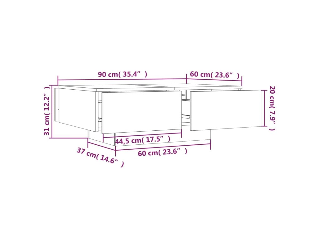 vidaXL Konferenčný stolík dymový dub 90x60x31 cm spracované drevo