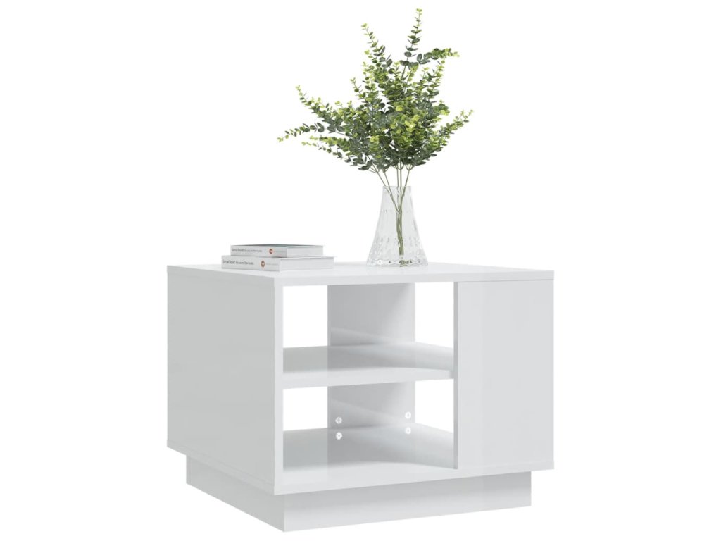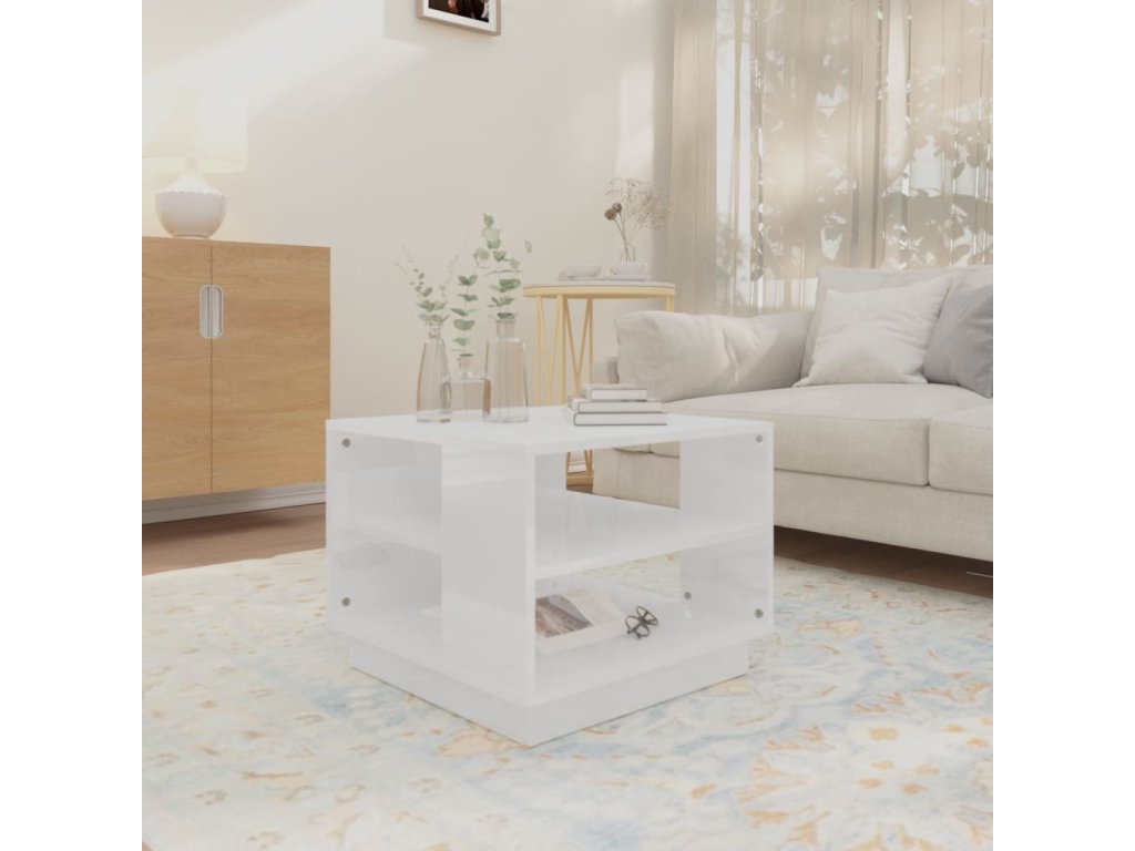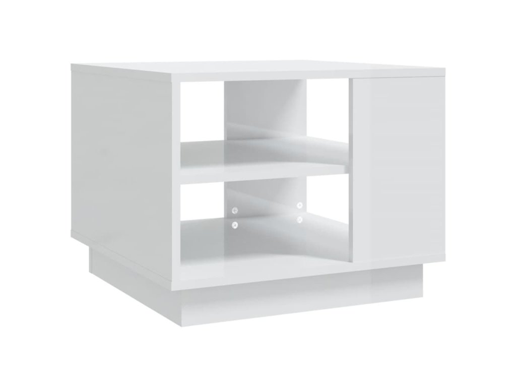 vidaXL Konferenčný stolík lesklý biely 55x55x43 cm drevotrieska