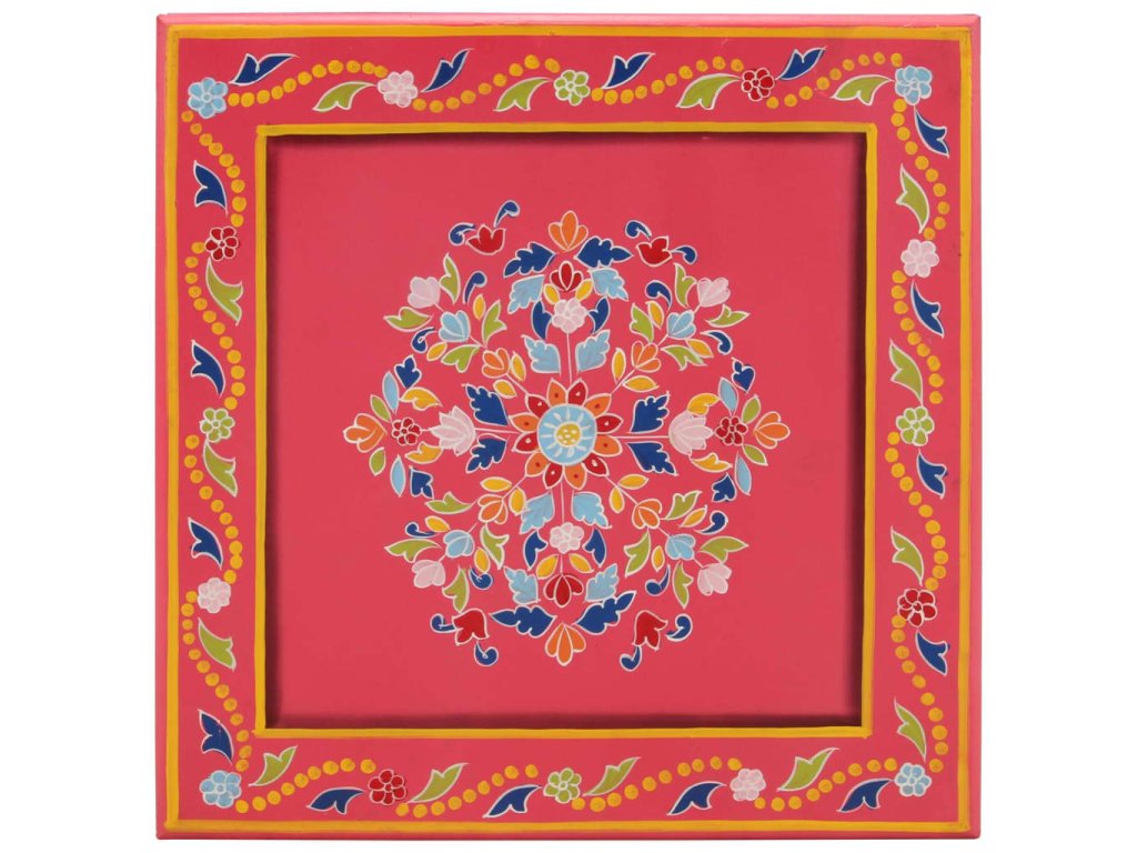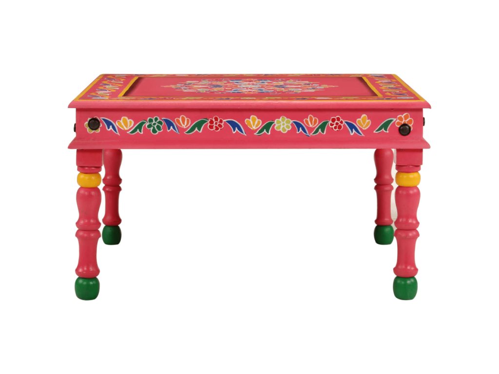 Tento drevený konferenčný stolík s bohatými ručne maľovanými dekoráciami bude pútavým doplnkom vašej obývačky.