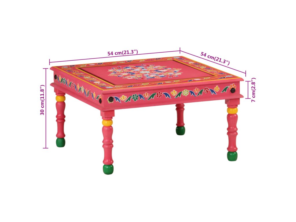 vidaXL Konferenčný stolík ružový ručne maľovaný masívny mangovník