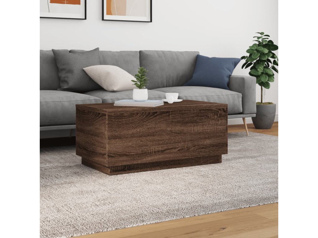 vidaXL Konferenčný stolík s LED osvetlením hnedý dub 90x50x40 cm