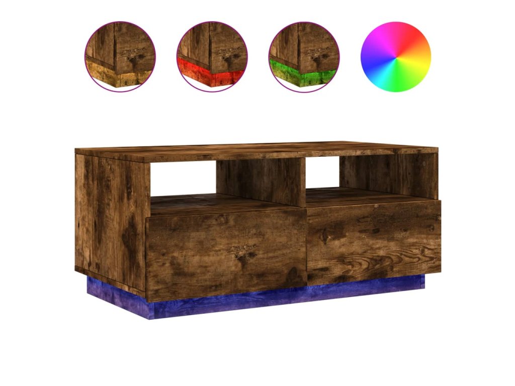 Ozdobte si obývačku týmto moderným konferenčným stolíkom s LED svetlami, ktorý sa ľahko kombinuje s nábytkom v akomkoľvek štýle u vás doma.