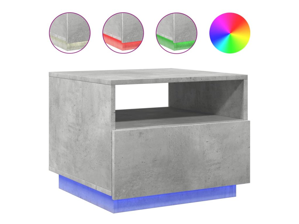vidaXL Konferenčný stolík s LED svetlami betónovosivý 50x49x40 cm