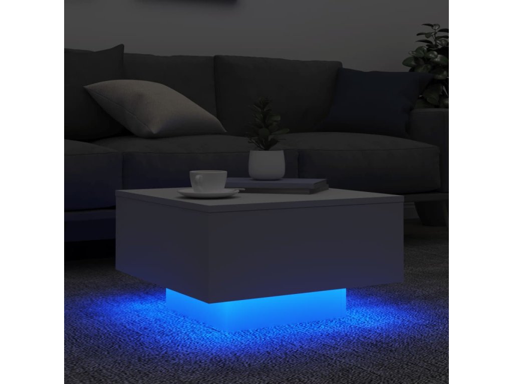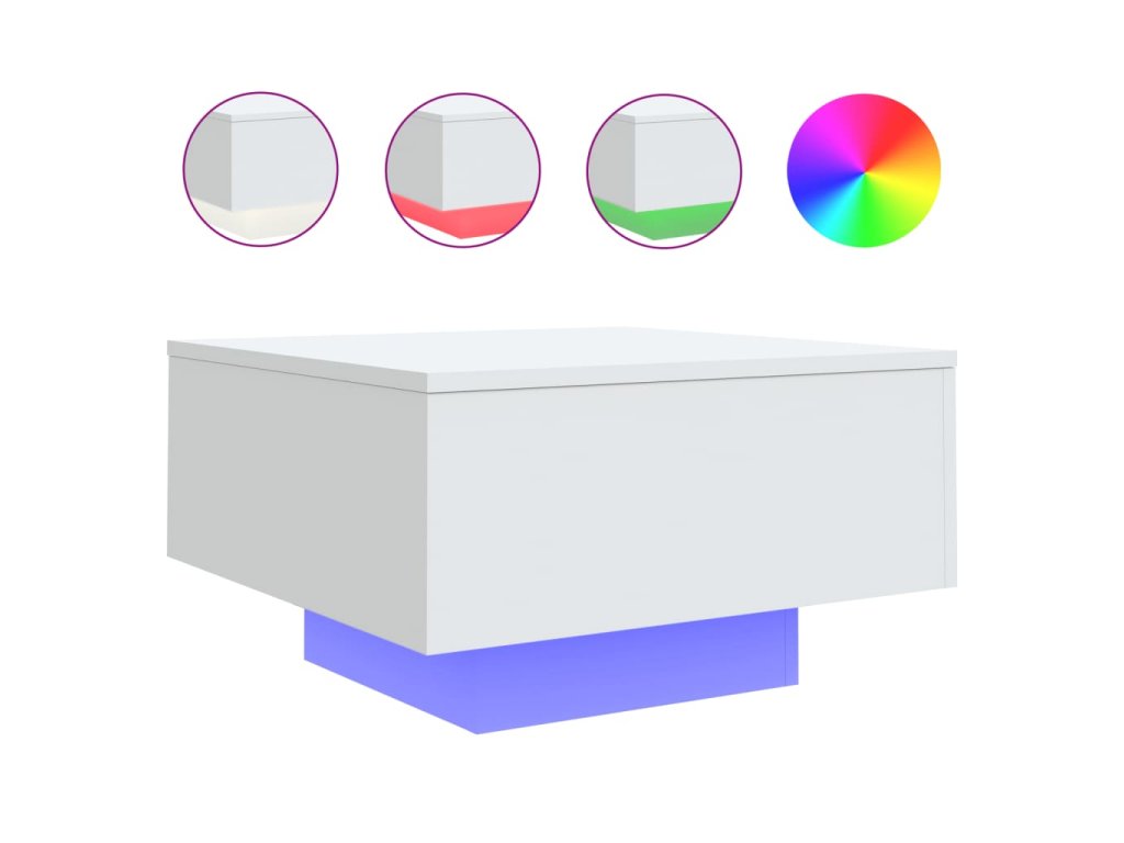 vidaXL Konferenčný stolík s LED svetlami biely 55x55x31 cm