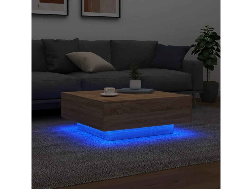 vidaXL Konferenčný stolík s LED svetlami dub sonoma 80x80x31 cm