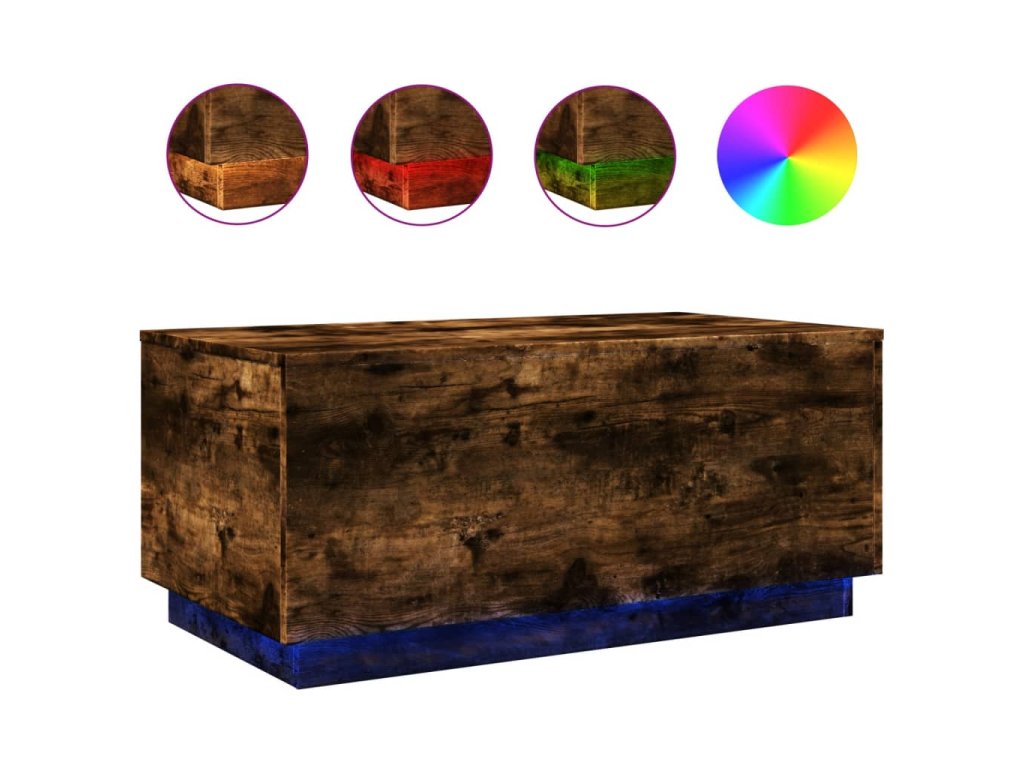 vidaXL Konferenčný stolík s LED svetlami dymový dub 90x50x40 cm
