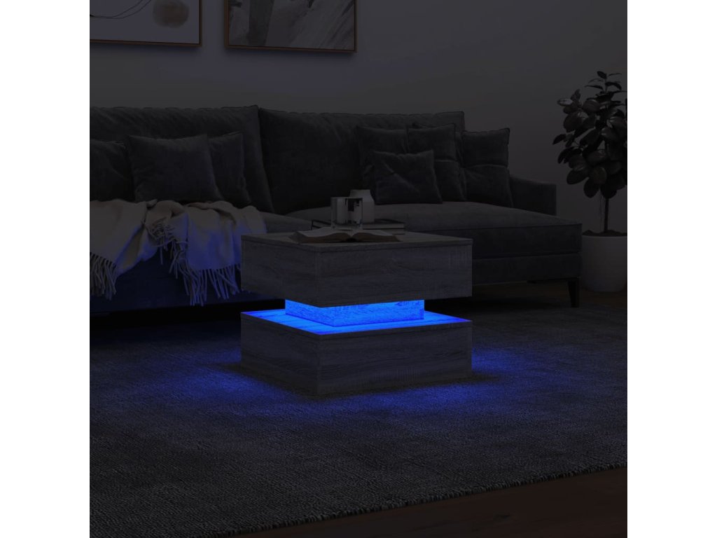 vidaXL Konferenčný stolík s LED svetlami sivý sonoma 50x50x40 cm