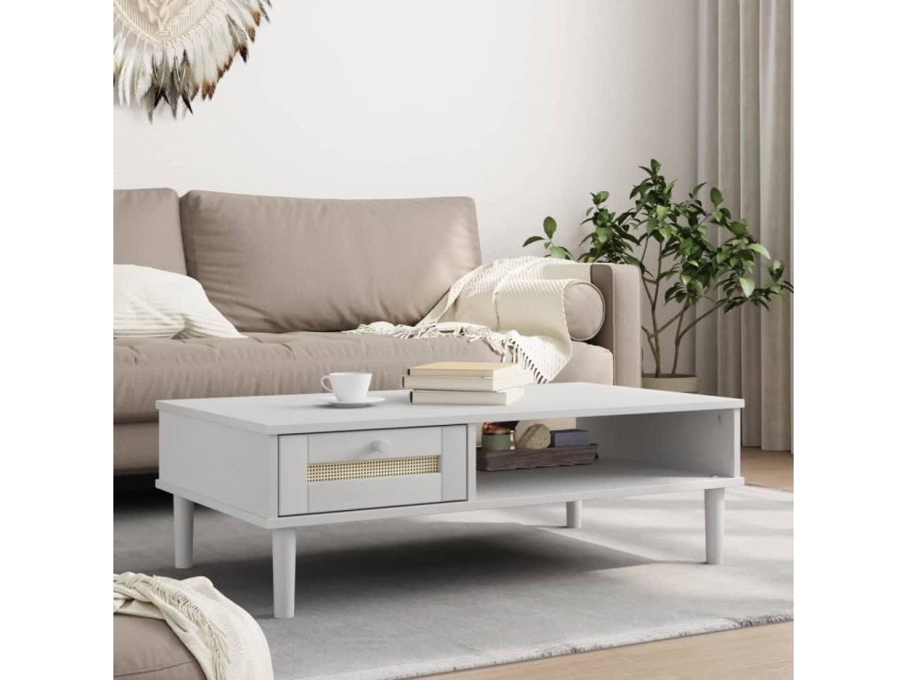 vidaXL Konferenčný stolík SENJA ratan. vzhľad biely 100x55x33 cm masív