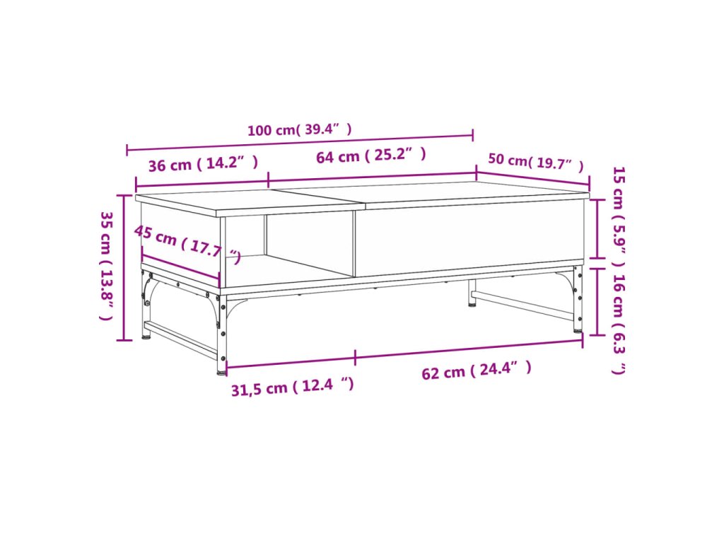 vidaXL Konferenčný stolík sivá sonoma 100x50x35cm kompozitné drevo+kov