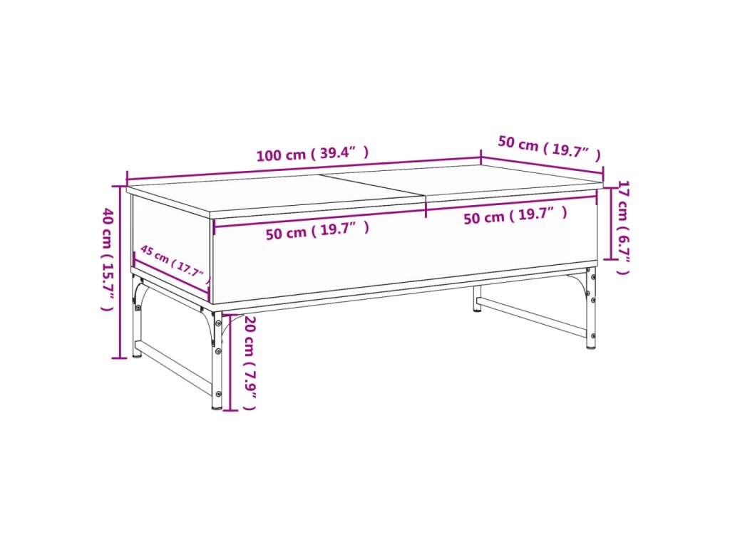vidaXL Konferenčný stolík sivá sonoma 100x50x40cm kompozitné drevo kov