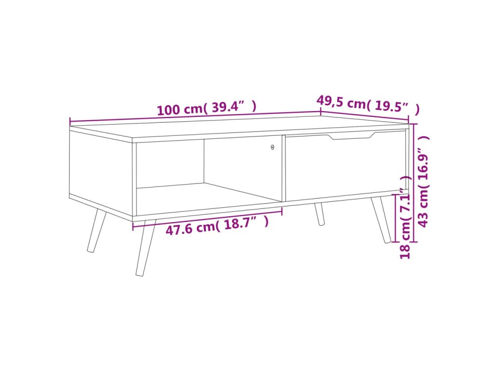 vidaXL Konferenčný stolík sivý 100x49,5x43 cm drevotrieska