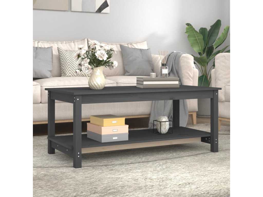 vidaXL Konferenčný stolík sivý 110x55x45 cm borovicový masív