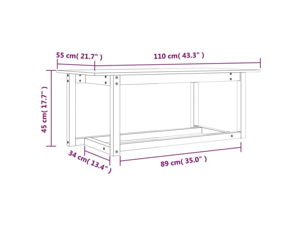 vidaXL Konferenčný stolík sivý 110x55x45 cm borovicový masív