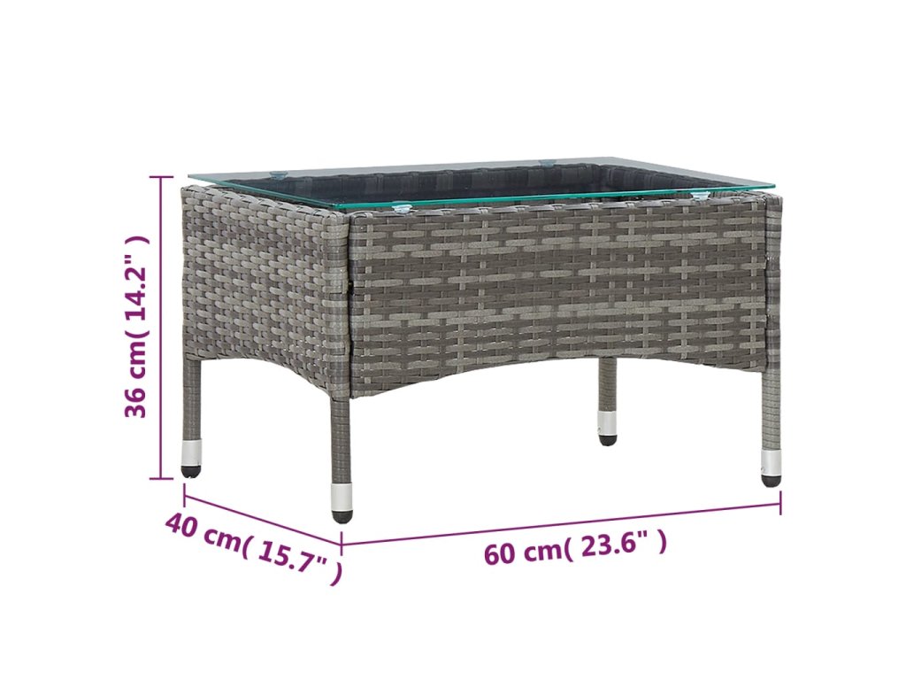 vidaXL Konferenčný stolík sivý 60x40x36 cm polyratanový