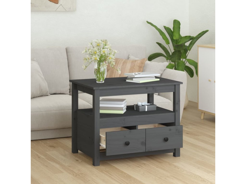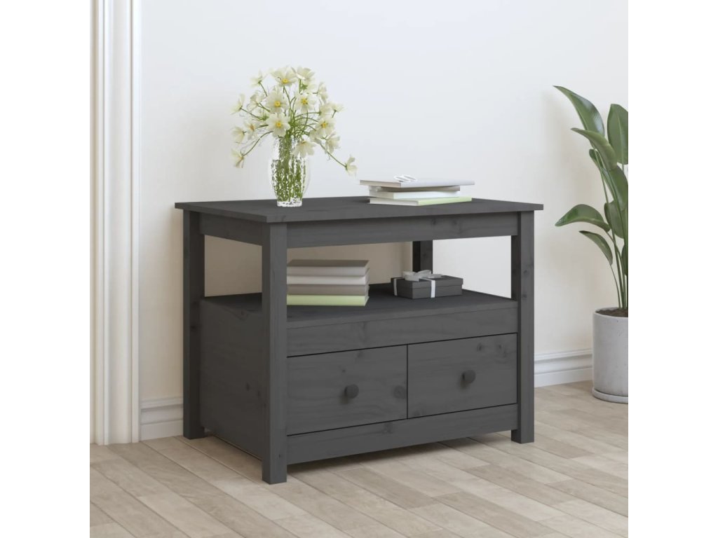 vidaXL Konferenčný stolík sivý 71x49x55 cm borovicový masív
