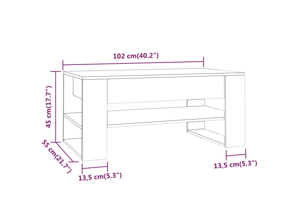- Dostatok úložného priestoru: Tento konferenčný stolík udrží váš obytný priestor bez neporiadku vďaka odkladacej poličke. Je ideálny na umiestnenie kníh, časopisov alebo malých predmetov, ktoré chcete mať na dosah ruky.