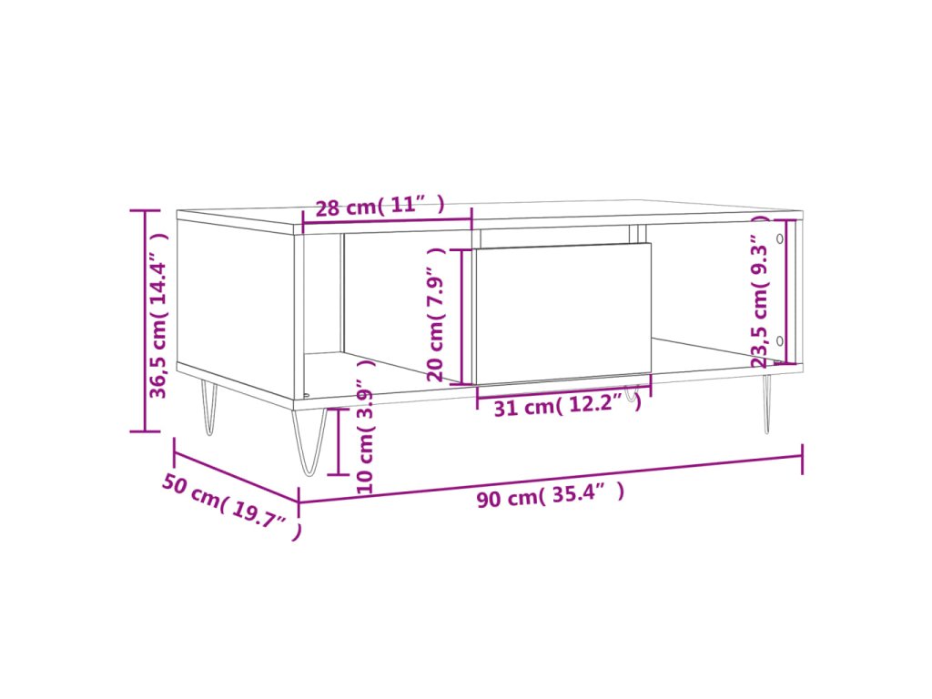 vidaXL Konferenčný stolík sivý dub sonoma 90x50x36,5 spracované drevo
