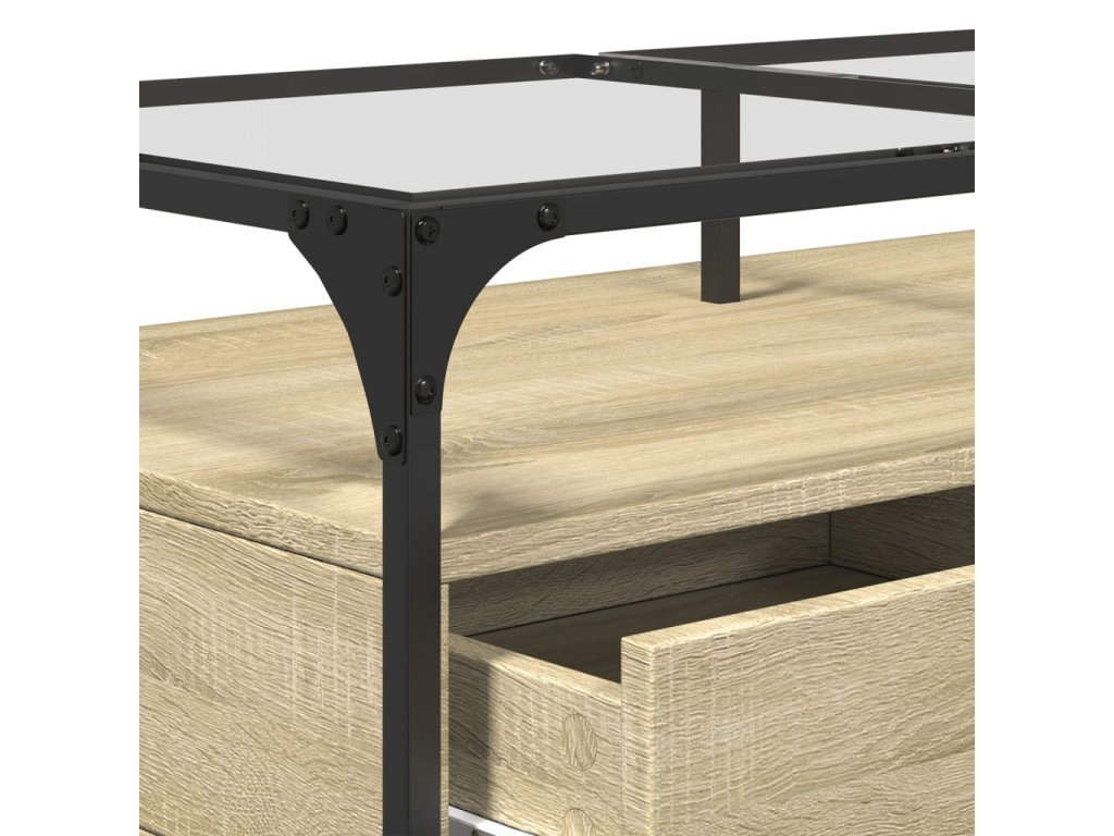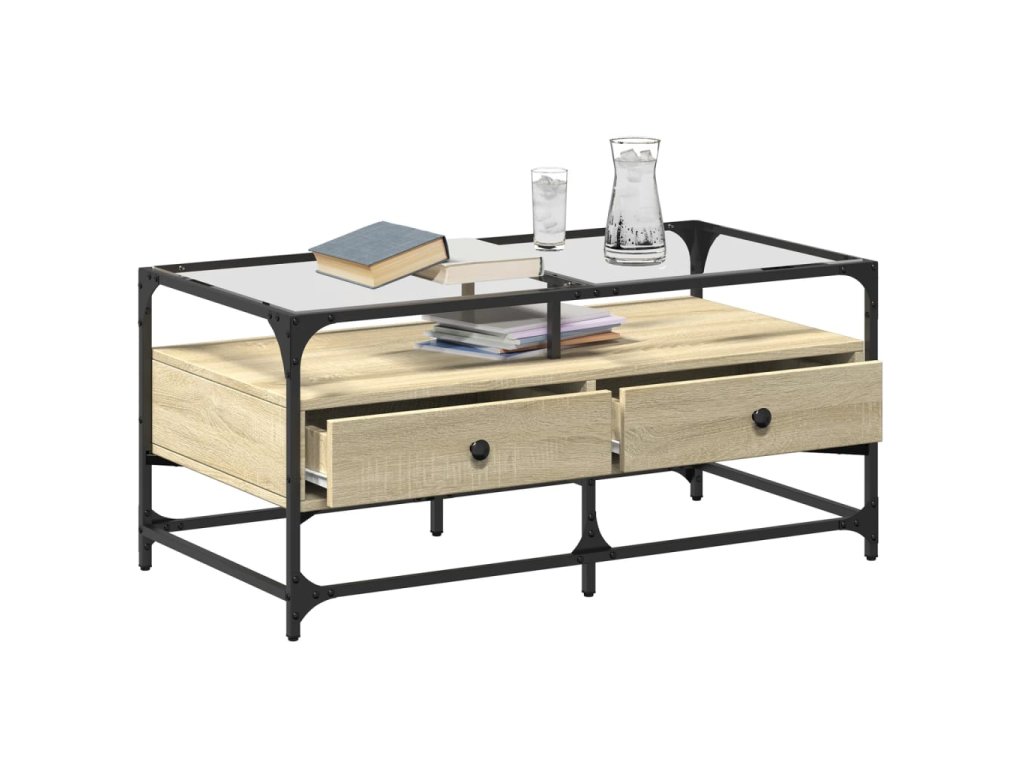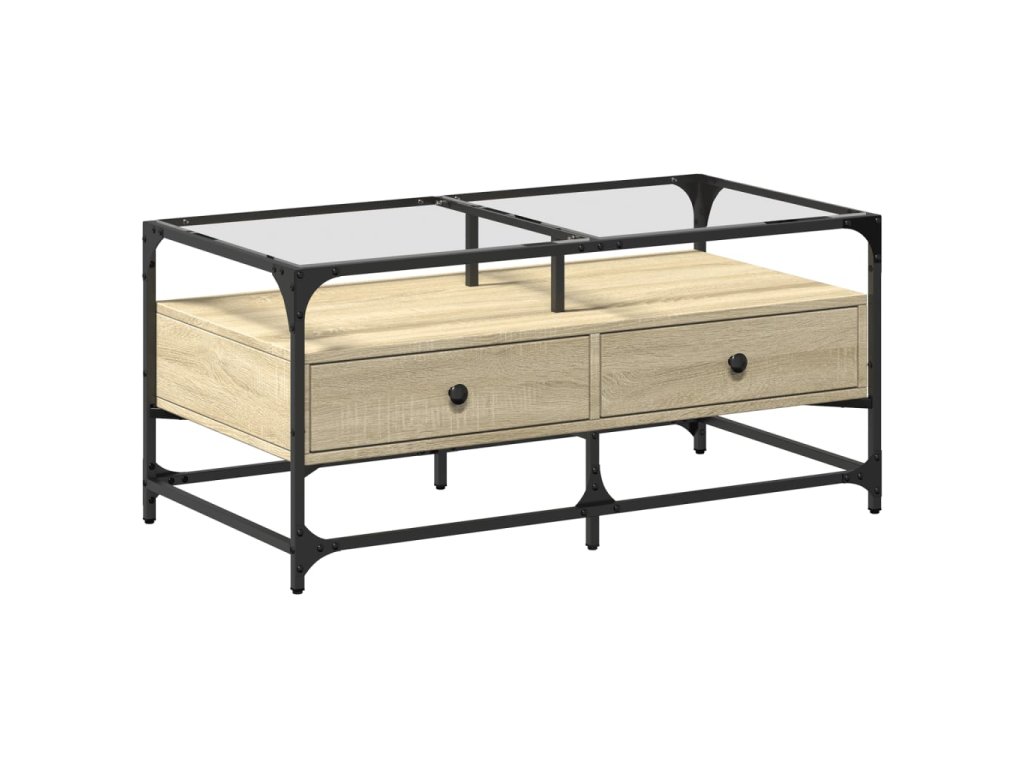 vidaXL Konferenčný stolík sklenená doska dub sonoma 98,5x50x45 cm oceľ