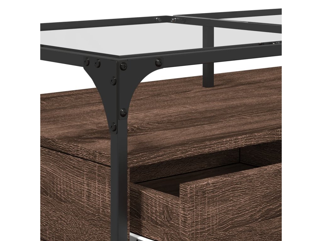 vidaXL Konferenčný stolík sklenená doska hnedý dub 98,5x50x45 cm oceľ