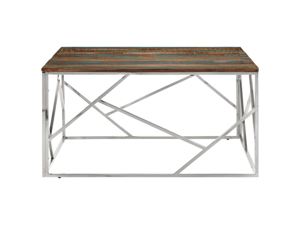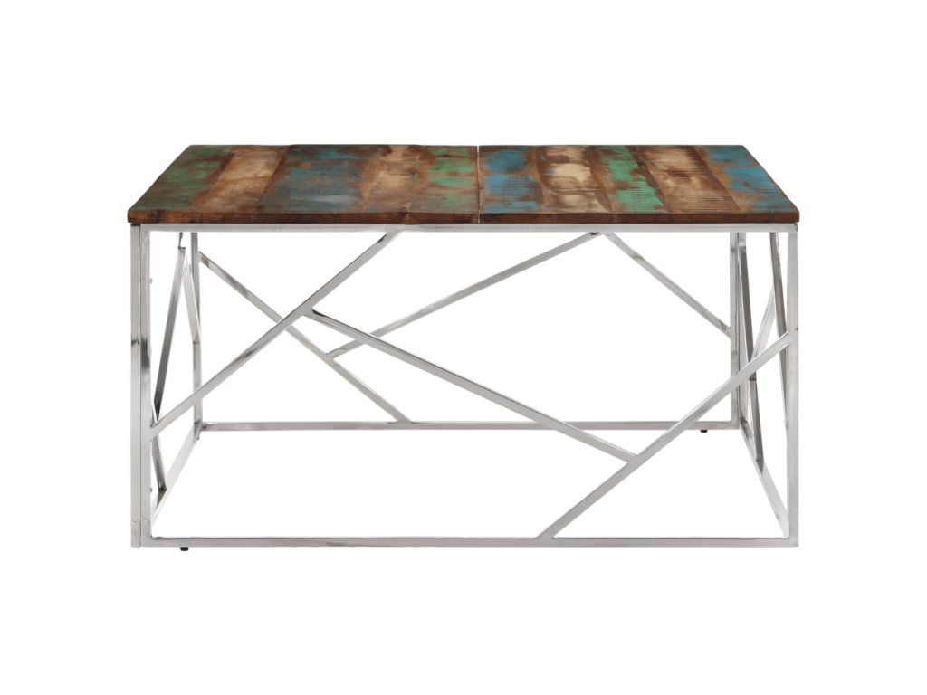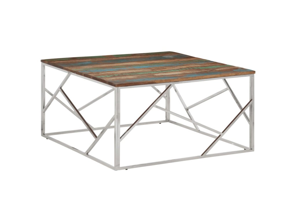 vidaXL Konferenčný stolík strieborný nehrdzavejúca oceľ a recyk. masív