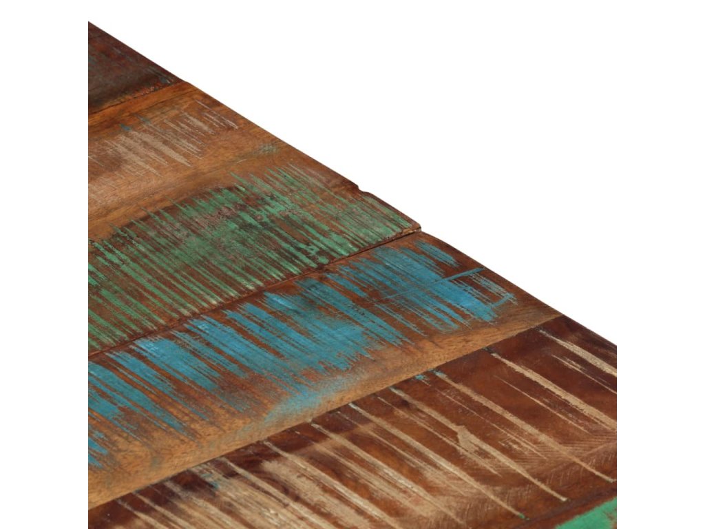 - Masívne regenerované drevo: Masívne recyklované drevo pozostáva z opätovne použitého dreva, ako je teakové drevo, mangovníkové drevo, borovicové drevo a bukové drevo. Tieto materiály sú recyklované zo starých budov, ako sú továrne, prístrešky a lode. Keďže každý kus je vyrobený ručne, farby jednotlivých výrobkov sa môžu líšiť. Stolová doska poskytuje bezpečný povrch na umiestnenie občerstvenia, nápojov, váz, misiek s ovocím alebo iných dekoratívnych predmetov.