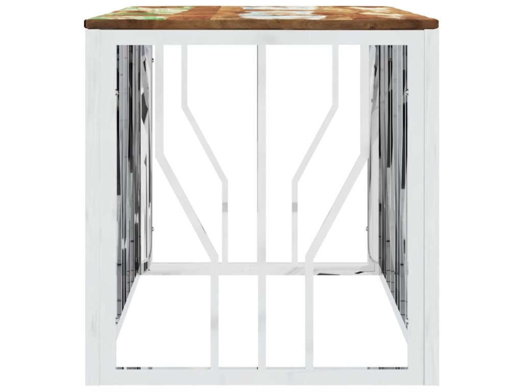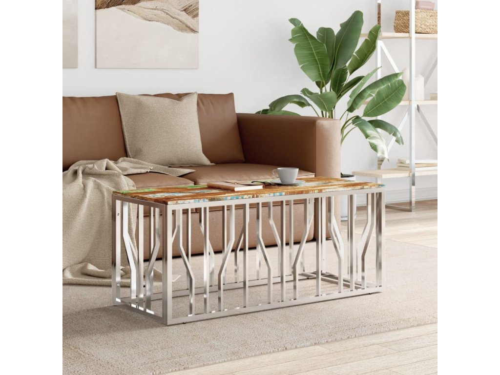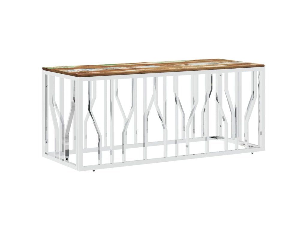 vidaXL Konferenčný stolík strieborný nehrdzavejúca oceľ a recyk. masív