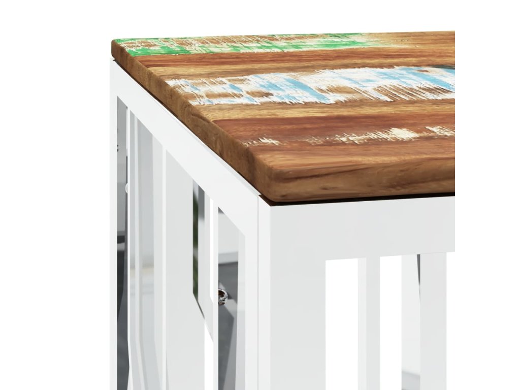 - Materiál: Nehrdzavejúca oceľ, masívne recyklované drevo so zmiešanou farebnou úpravou