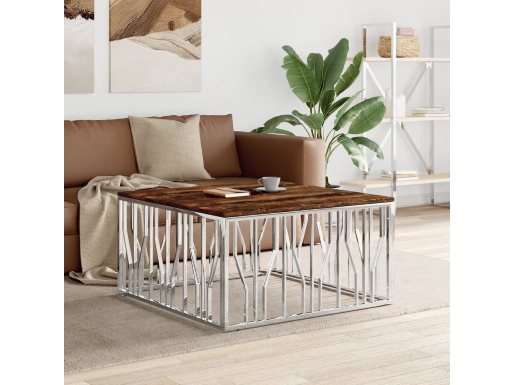vidaXL Konferenčný stolík strieborný nehrdzavejúca oceľ a recyk. masív
