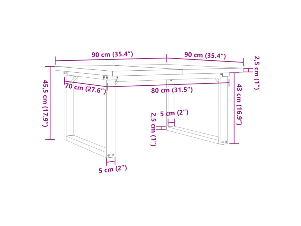- Rozmery: 90 x 90 x 45,5 cm (D x Š x V)