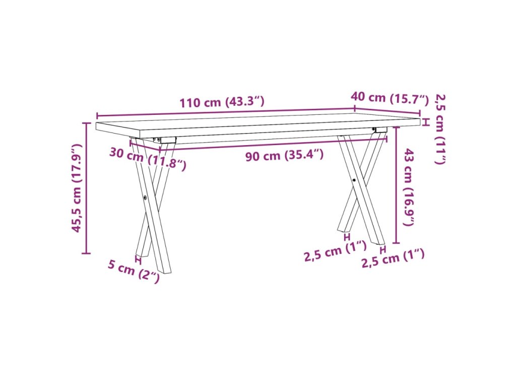 vidaXL Konferenčný stolík v tvare X 110x40x45,5 cm borovica a oceľ