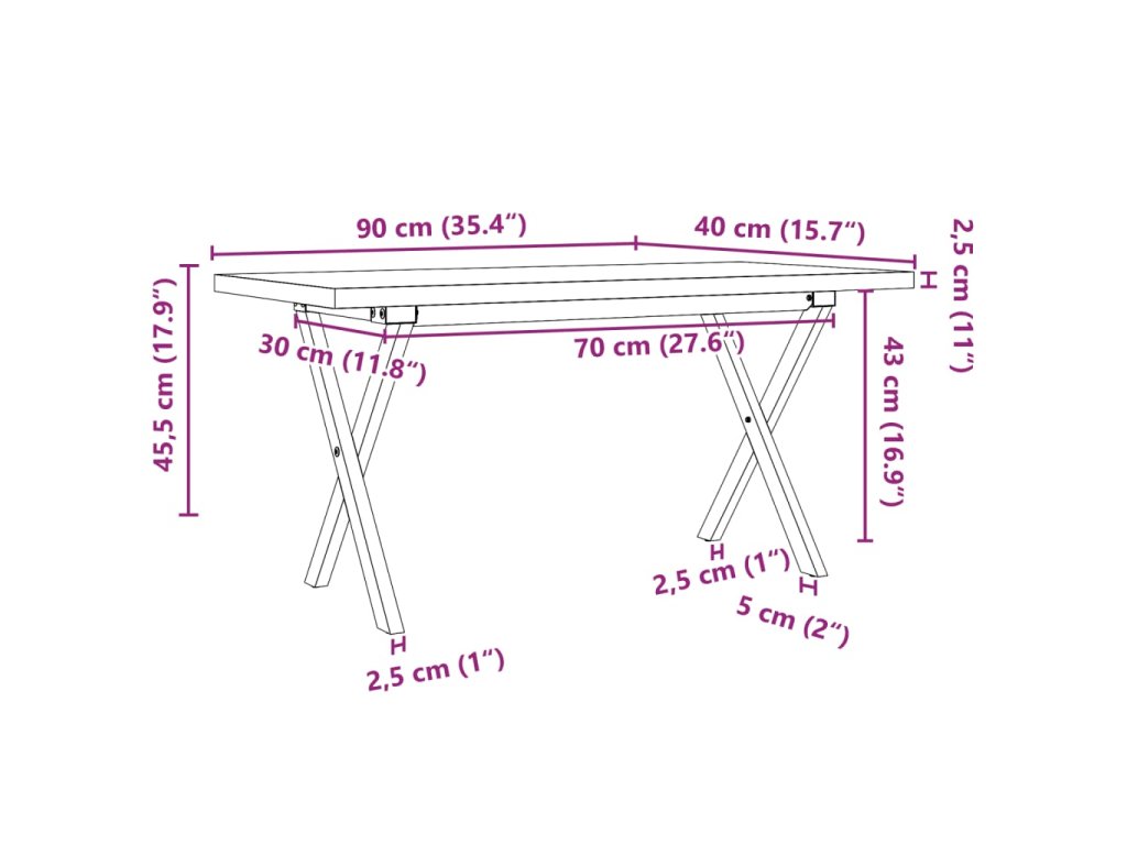 vidaXL Konferenčný stolík v tvare X 90x40x45,5 cm borovica a oceľ
