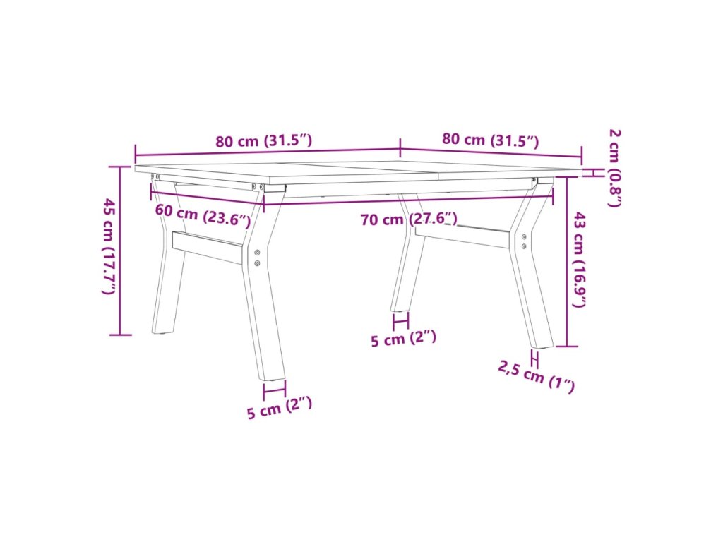vidaXL Konferenčný stolík v tvare Y 80x80x45 cm borovica a oceľ