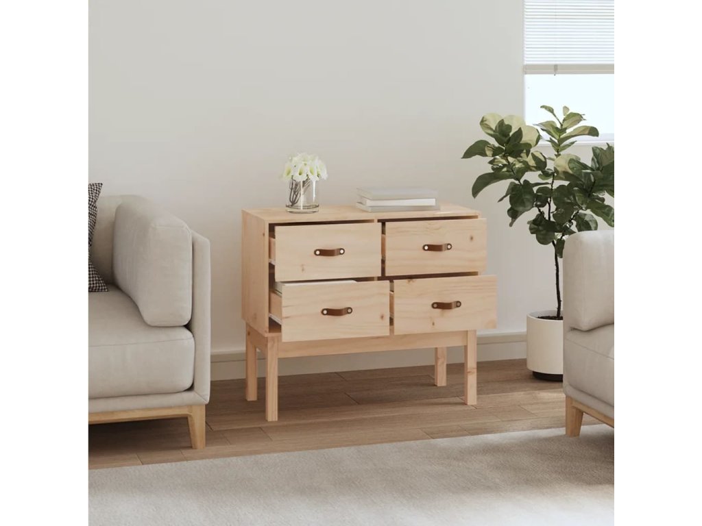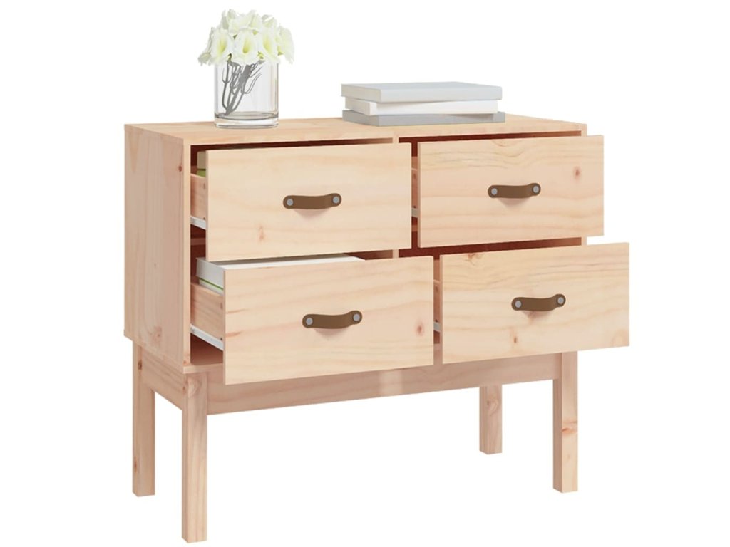 - Masívne borovicové drevo: Táto skrinka je vyrobená z masívneho borovicového dreva. Masívne borovicové drevo je krásny prírodný materiál. Borovicové drevo má rovnú štruktúru a uzly dodávajú materiálu jeho typický rustikálny vzhľad.